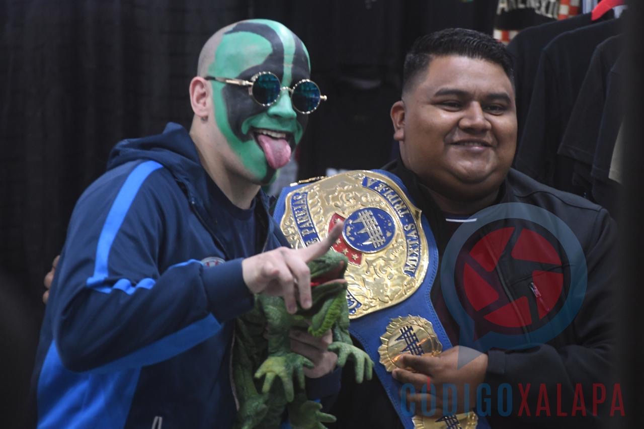 El carismático luchador Mr. Iguana convivió con aficionados de todas las edades previo a la esperada función de lucha libre que se llevará a cabo en la Arena Xalapa.