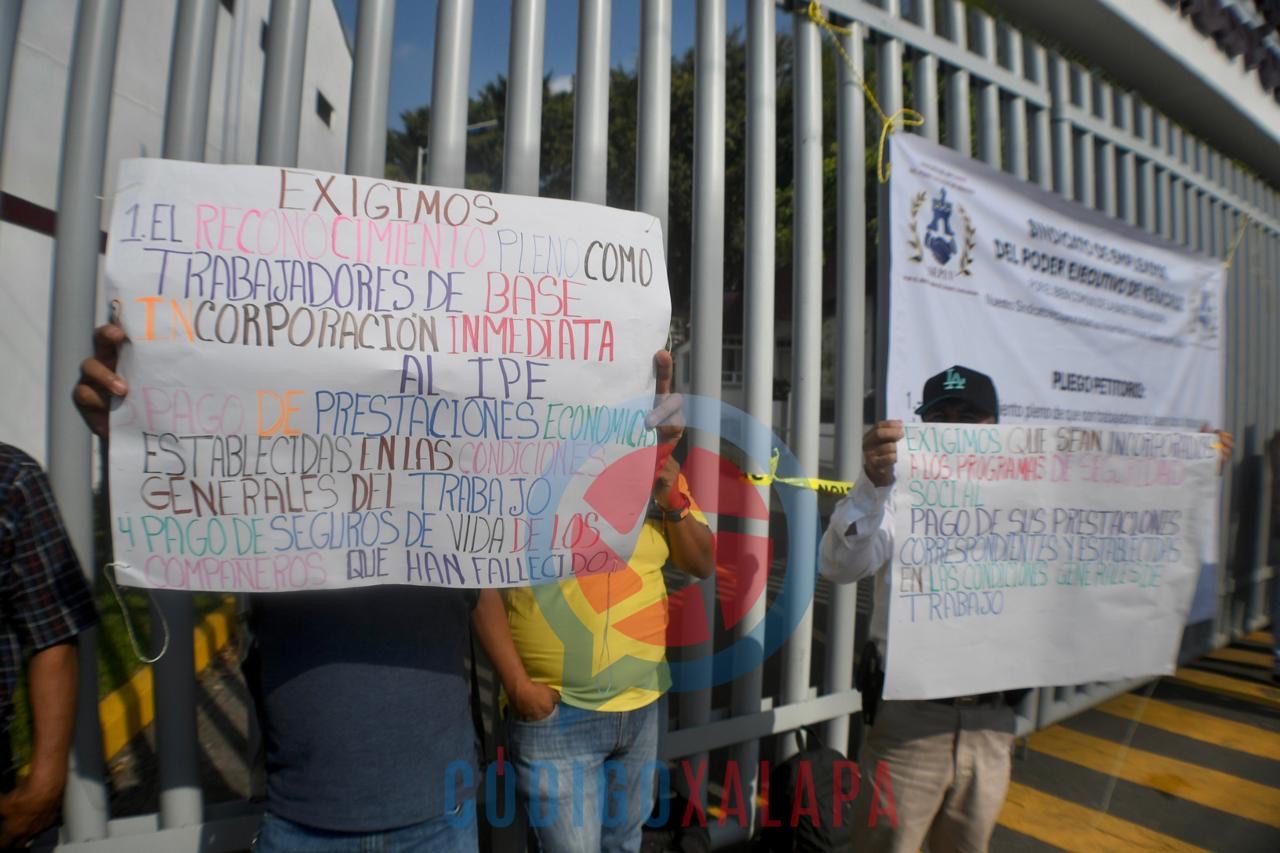 Los inconformes señalaron que su principal demanda es que se reconozca como trabajadores de base a todos aquellos que han obtenido un laudo laboral favorable ante el Tribunal de Conciliación y Arbitraje (TCA).