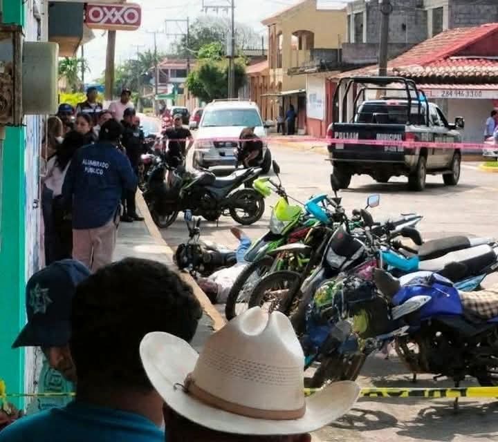 Saltabarranca, Ver.— Un violento ataque armado registrado la tarde de este martes en pleno centro del municipio dejó como saldo un empleado municipal sin vida y una trabajadora del DIF gravemente lesionada, tras ser agredidos a balazos frente a las instalaciones del organismo asistencial.