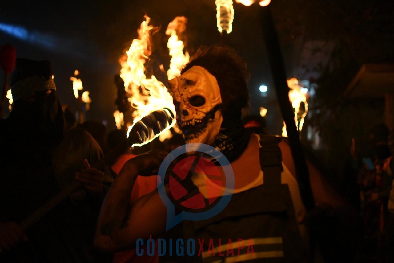 Coatepec, Ver., — Habitantes de esta localidad de Tuzamapan salieron a las calles disfrazados y portando antorchas encendidas para llevar a cabo la tradicional quema del mal humor, con la que inició el carnaval en la comunidad.