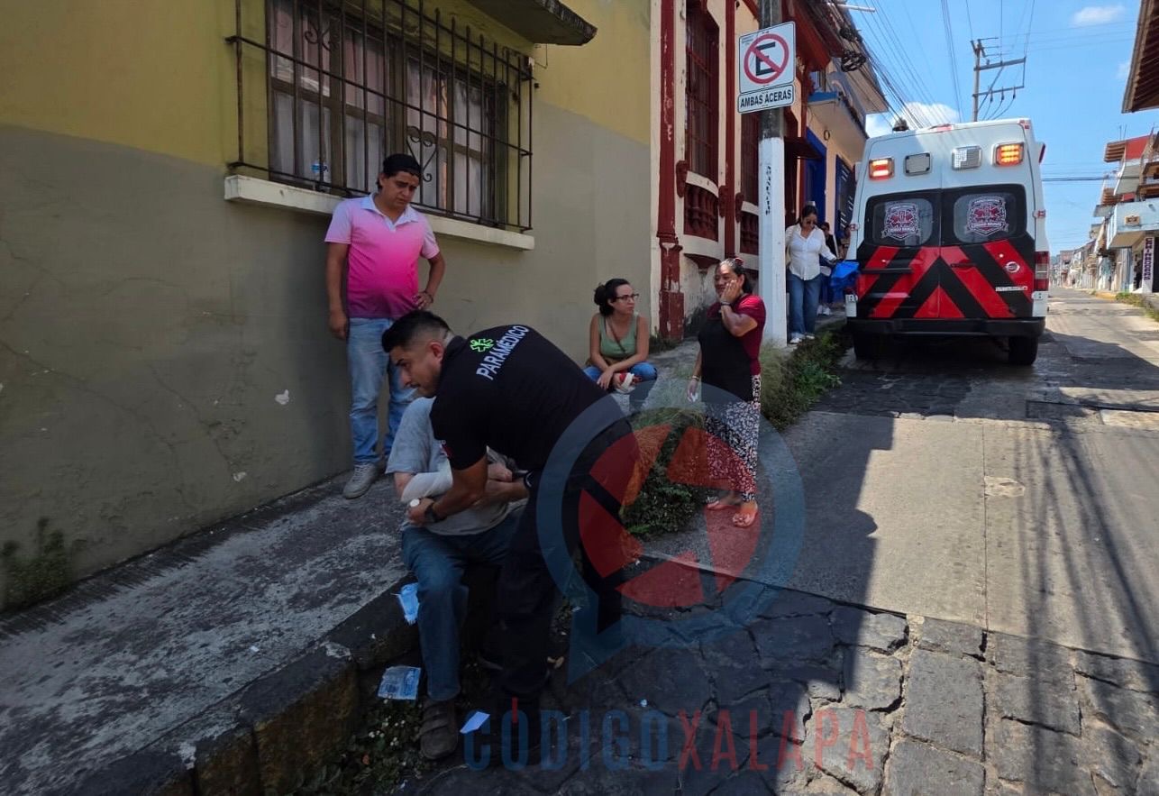Xalapa, Ver., 27 de abril de 2026.— Un adulto mayor resultó lesionado tras sufrir una caída sobre la calle José María Alfaro, casi en la esquina con Ignacio Aldama, en la zona centro de la ciudad.