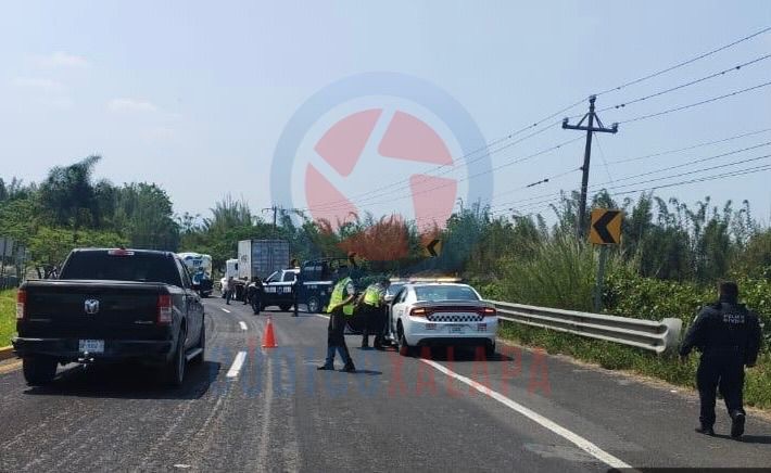 Elementos de la Guardia Nacional acudieron al sitio para realizar el deslinde de responsabilidades, mientras que la Policía Estatal implementó labores de abanderamiento para prevenir otro percance.