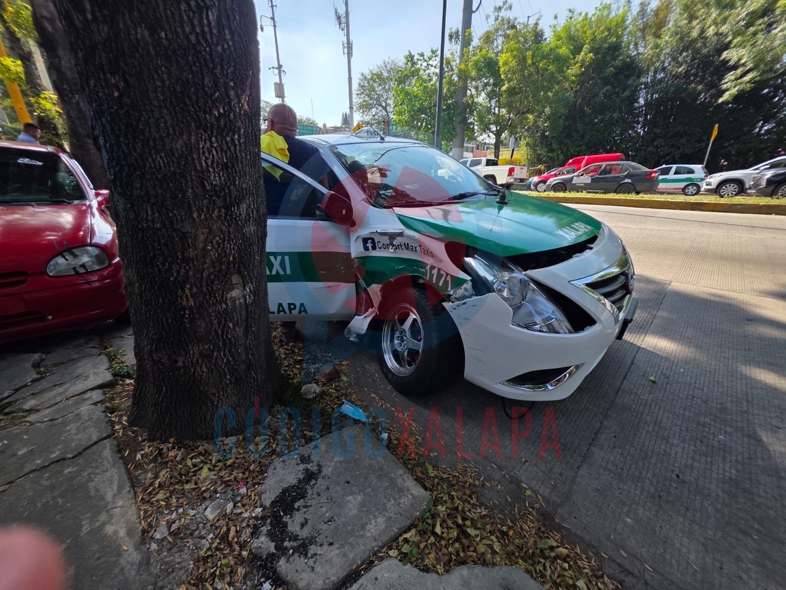 Xalapa, Ver., 28 de abril de 2026.– Un choque múltiple entre tres vehículos registrado la mañana de este martes en Circuito Presidentes, esquina con Ángel Carvajal, provocó severo congestionamiento con dirección al Velódromo.