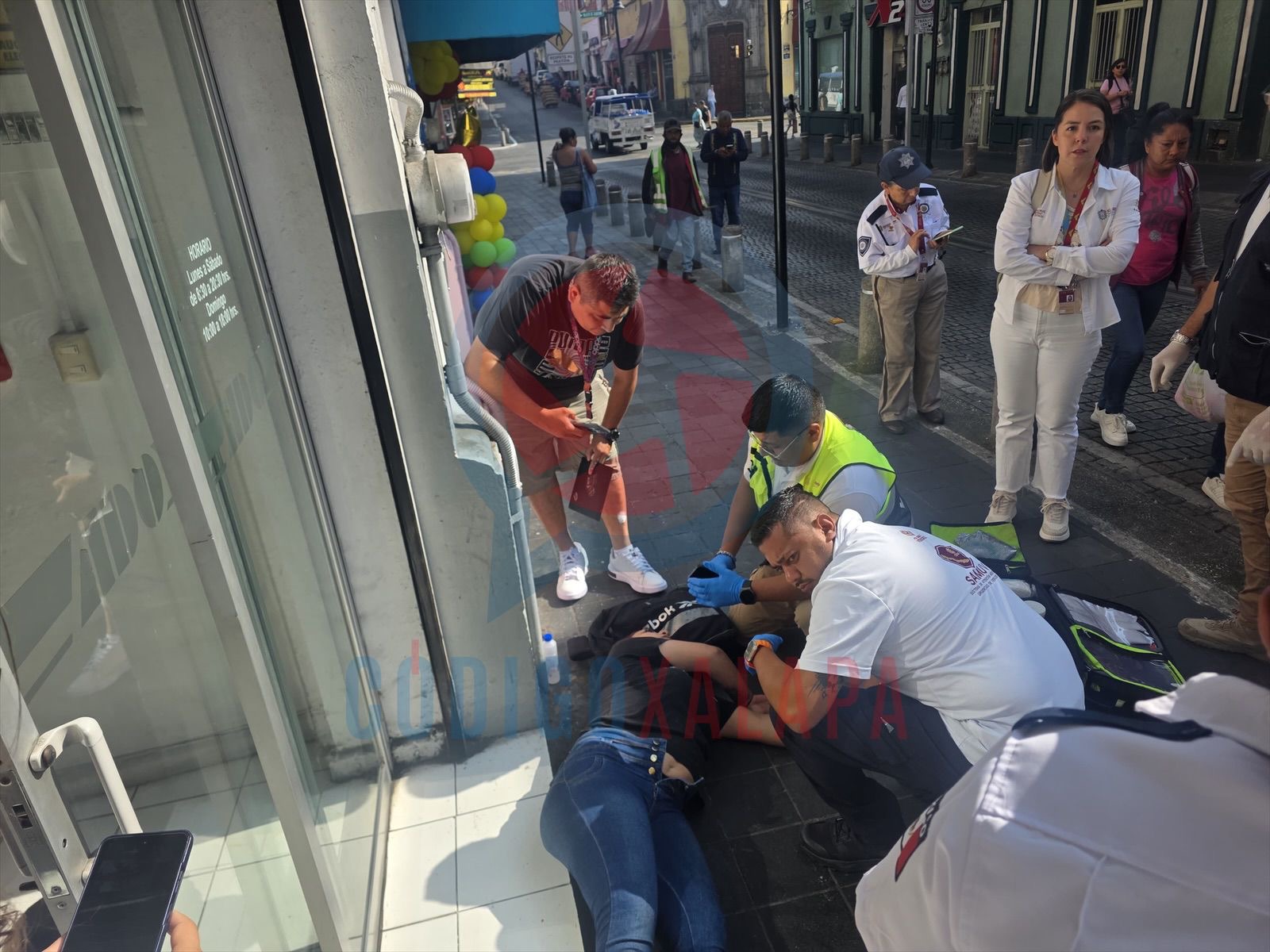 Xalapa, Ver., 30 de abril de 2026.— La mañana de este jueves, una mujer generó movilización de cuerpos de emergencia tras desvanecerse mientras caminaba sobre la calle Primo Verdad, en la zona centro de la ciudad.